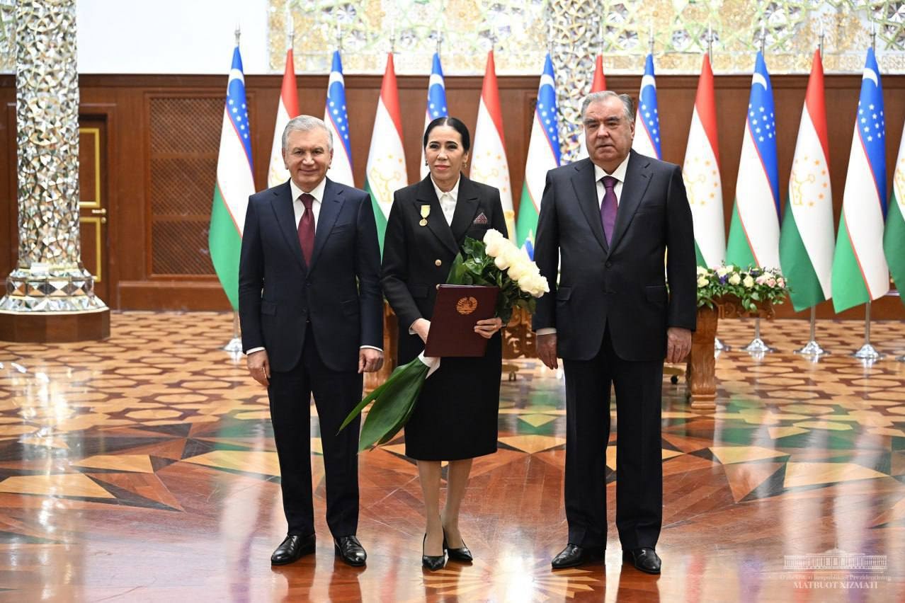 Дар навбати худ бо унвони фахрии «Ҳофизи мардумии Тоҷикистон» профессори кафедраи «Мақомсароӣ»-и Донишкадаи миллии санъати мусиқии Ӯзбекистон ба номи Ю. Раҷабӣ Муноҷотхон Юлчиева, вазири фарҳанги Ҷумҳурии Ӯзбекистон, Озодбек Назарбеков; роҳбари бадеии ансамбли суруд ва рақси «Лазгӣ»-и Филармонияи давлатии Ӯзбекистон Оғабек Собиров, сароянда Юлдуз Усмонова, инчунин бо унвони фахрии «Ҳунарпешаи халқии Тоҷикистон» директори Театри миллии академии драмавии ӯзбек Ёдгор Саъдиев сарфароз гардонда шуданд.