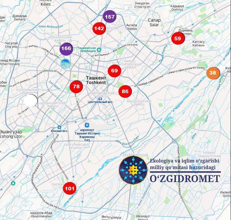 Мувофиқи маълумоти стансияҳои автоматии мониторинги ифлосшавии ҳавои атмосфера дар ҳавои атмосфераи шаҳри Тошканд: