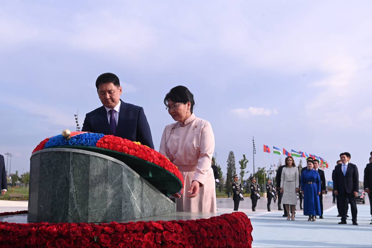«Меҳмони олимартаба бо моҳият ва хусусиятҳои қарорҳои меъморӣ ва композитсияи маҷмаа шинос шуд», — навиштааст котиби матбуоти Сарвазир Бекзод Ҳидоятов дар telegram-канали худ. -- Маҷмаа ба ҳайати вакилони Муғулистон таассуроти калон бахшид».