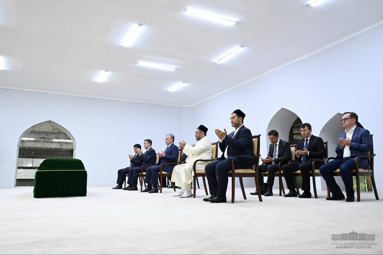 Раҳбари давлатамон аввал мақбараи Имом Бухориро дар ноҳияи Пайариқ зиёрат кард. Сураҳо аз Қуръон ва дуо хонда шуданд.