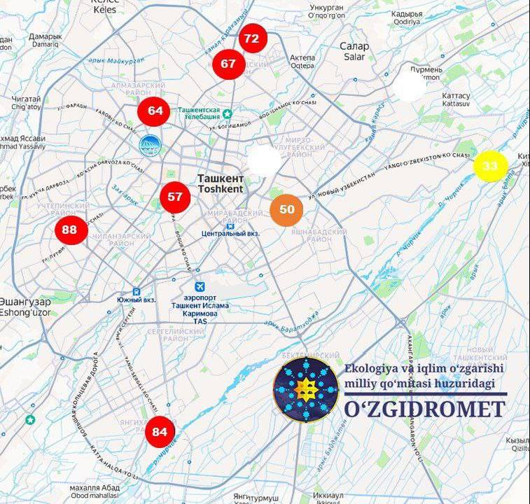 Тавре хадамоти «Ӯзгидромет» хабар медиҳад, нишондиҳандаи PM10 ба 124 мкг/м³ баробар буда, ки аз ҳадди меъёри иҷозатдодашуда (ПДК – 300 мкг/м³) хеле пасттар аст ва аз коҳиш ёфтани сатҳи зарраҳои калони овезон дар ҳаво гувоҳӣ медиҳад.