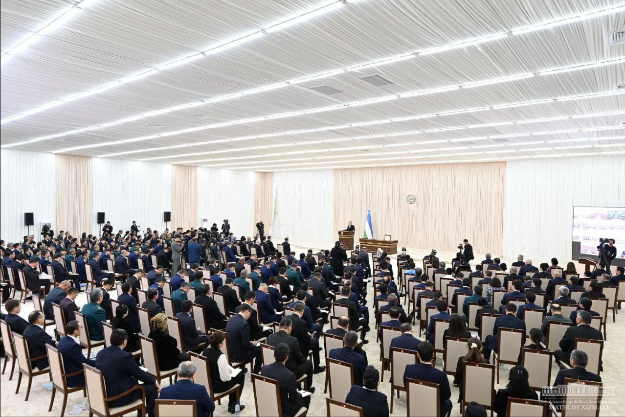 Президент Шавкат Мирзиёев дар оғози суханронии худ таъкид кард, ки дар мамлакатамон тамоми кӯшишот барои баланд бардоштани қадри инсон, фароҳам овардани шароити муносиб барои аҳолӣ ва таъмин намудани  шуғл ба кор бурда мешавад.