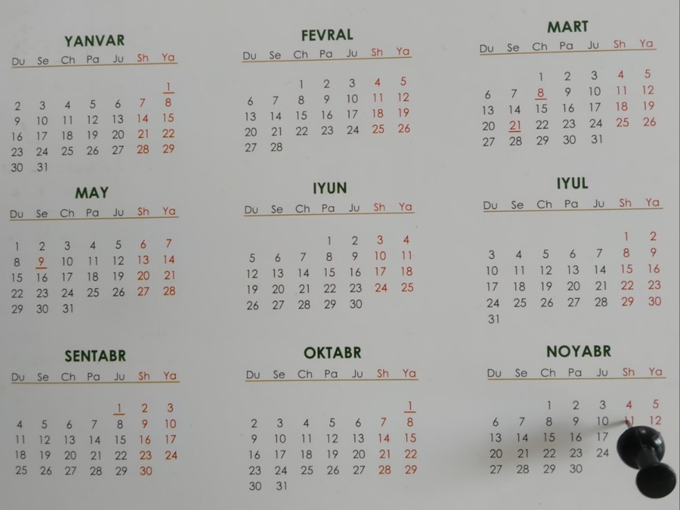 Yaʼni, 11-noyabr – Oʻzbekiston kasaba uyushmalari kunini ishlanmaydigan bayram kunlari qatoriga qoʻshish belgilanmoqda.