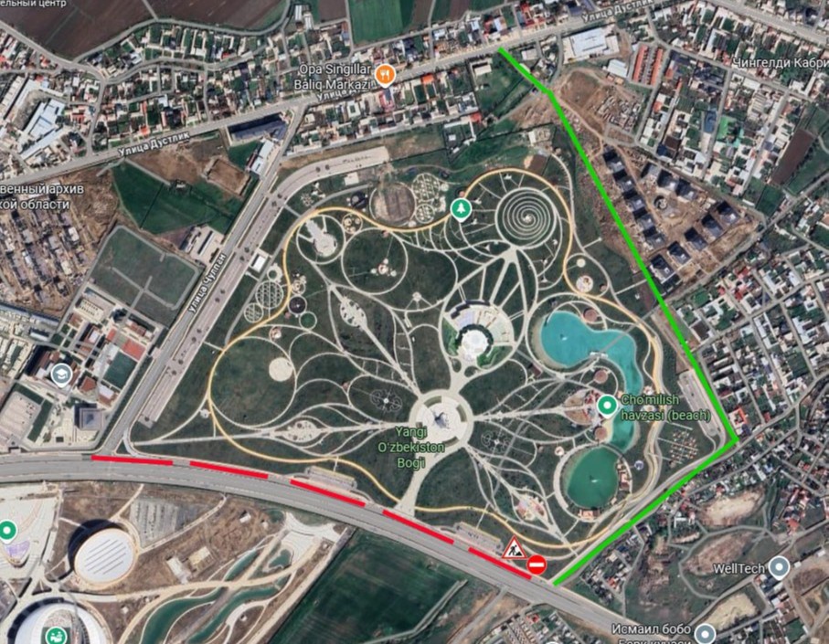 Avtoulovlar harakati “Yangi Oʻzbekiston“ bogʻi chegara hududidagi yoʻl orqali “Milliy bogʻ“ koʻchasiga yoʻnaltiriladi, — deyiladi xabarda.