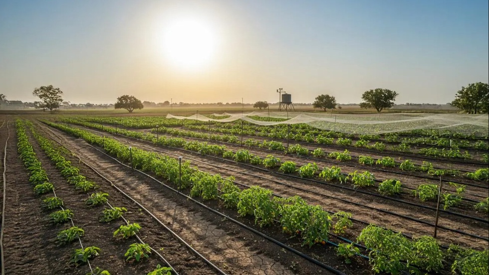 Uzun muddatli yuqori harorat meva-uzum navlarining oʻsishini va hosildorligini kamaytirishi mumkin. Bunday sharoitda, tomchilatib sugʻorish usuli oʻsimliklar uchun eng samarali usul hisoblanadi, chunki bu suvni aniq va samarali taqsimlash, tuproqda namlik balansini saqlashga yordam beradi.