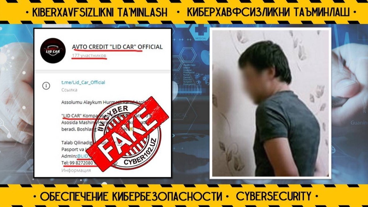Xabarga koʻra, Sh.C. ismli shaxs 2020-yilning oktyabr oyidan 2021-yilning aprel oyiga qadar 4 nafar sherikgi bilan “LID CAR” nomli MCHJ tashkil etib, “3 yil muddatga 15 foizlik kredit” asosida 90 kun ichida avtomashina olib berishi haqida yolgʻon axborotlarni Telegram ijtimoiy tarmogʻidagi “AVTO CREDIT “LID CAR” OFFICIAL” nomli kanal orqali tarqatadi. Bunga ishongan fuqarolarning pul mablagʻlarini esa firibgarlik yoʻli bilan oʻzlashtirib kelgan.