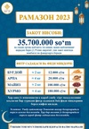 Bugungi kunda mazkur mahsulotlarning bozordagi oʻrtacha narxlari 1 kg. bugʻdoy – 6 ming, 1 kg. arpa – 5 ming, 1 kg. mayiz – 50 ming va 1 kg. xurmo – 45 ming soʻm ekanligini inobatga olib, bu yilgi FITR sadaqasi quyidagicha etib belgilandi: