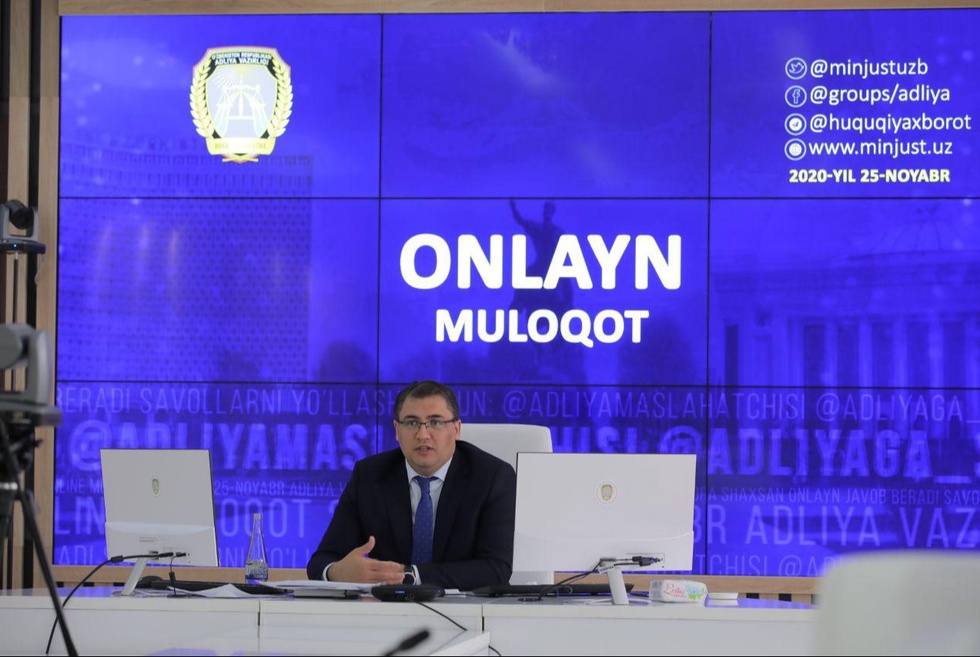 Joriy yilning 25 noyabr` kuni Adliya vaziri Ruslanbek Davletovning Facebook dagi “Xalq bilan muloqot/Dialog s narodom” guruhida fuqarolar bilan onlayn muloqoti bo'lib o'tdi.