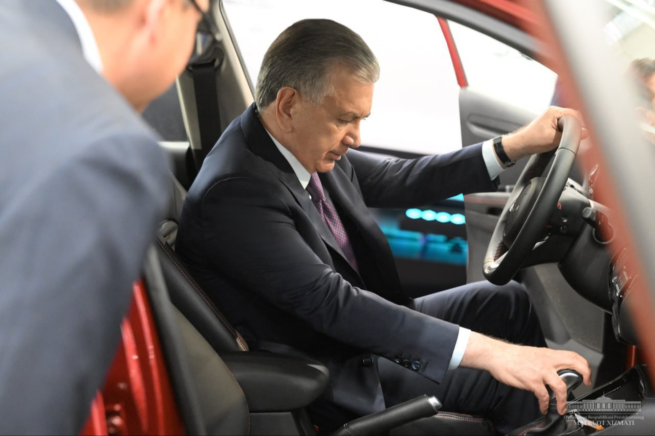 Davlatimiz rahbari zavodda ishlab chiqarish boshlangan yangi “Kia Sonet” avtomobilini ko‘rdi.