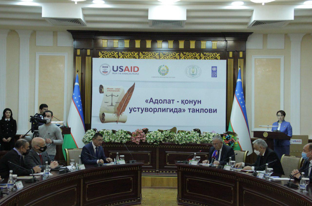 AQSH xalqaro taraqqiyot agentligi (USAID) hamda Birlashgan Millatlar Tashkiloti taraqqiyot dasturining “Oʻzbekistonda qonun ustuvorligi yoʻlida hamkorlik” qoʻshma loyihasi koʻmagida tashkil etilgan ushbu tadbirda Oʻzbekiston Respublikasi Konstitutsiyaviy sudi raisi M.Abdusalomov, Sudyalar oliy kengashi raisi X.Yodgorov, AQSH elchisi oʻrinbosari Alan Melser va boshqa davlat organlari xodimlari hamda OAV vakillari ishtirok etdi.