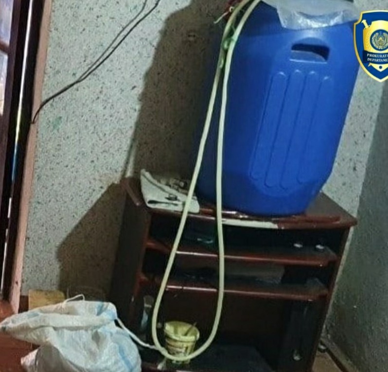 Tadbirda fuqaro U.G. oʻz uyida yashirin sex tashkil qilib, qalbaki aksiz markali alkogol mahsulotlarini ishlab chiqarayotganligi aniqlanib, tadbir davomida ushbu xonadondan 4 861 dona qalbaki aksiz markalar, 403 dona “Qaratau” nomli qoʻlbola usulda tayyorlangan alkogol mahsulotlari, hajmi 1 litr idishdagi 191 dona spirt, shtrix kodli yorliqlar va ishlab chiqarishda foydalanilgan boshqa tovar moddiy boyliklar ashyoviy dalil sifatida olingan.