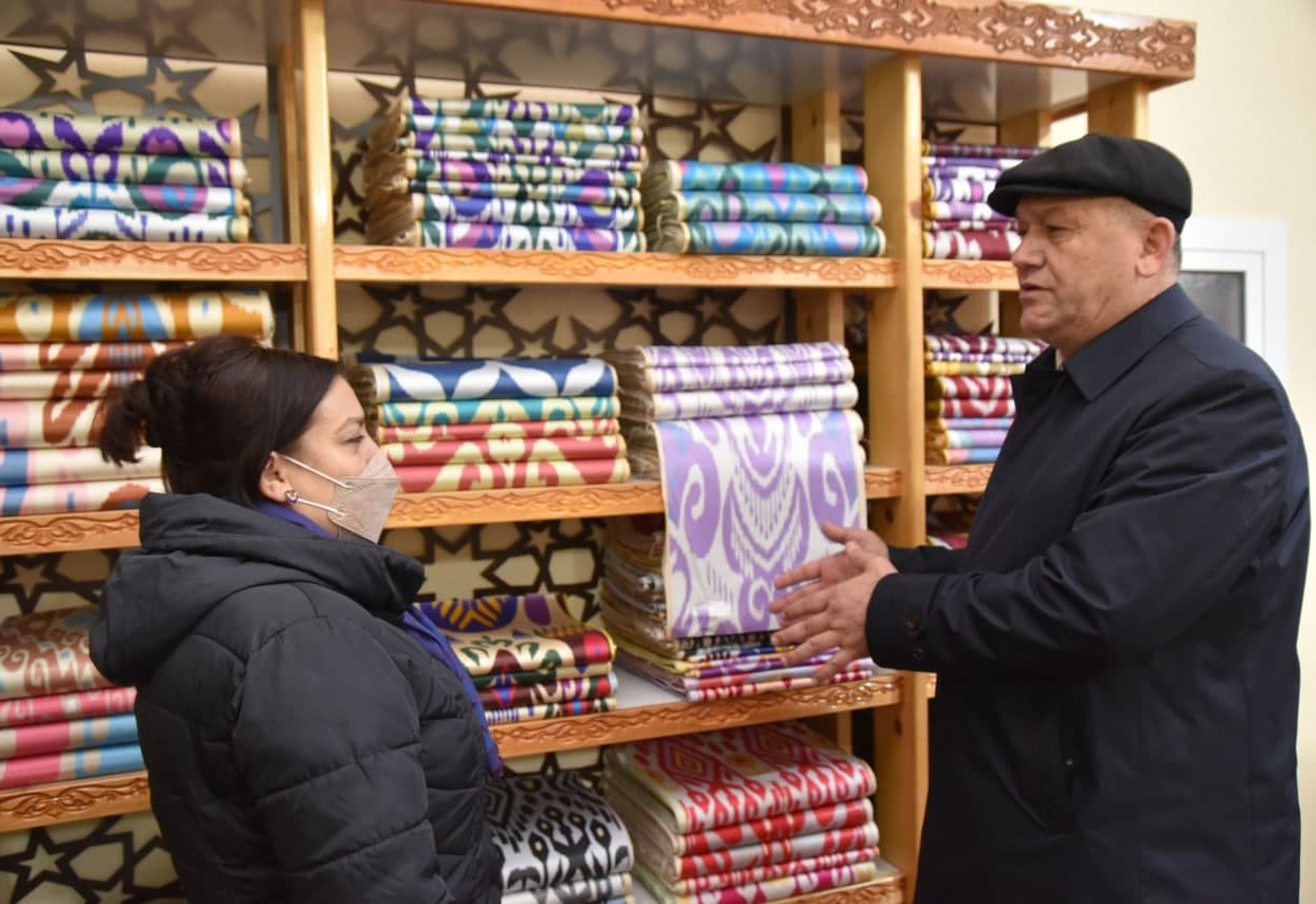 “Sharq ipagi durdonasi” adras to'qish fabrikasida amalga oshirilayotgan istiqbolli loyihalar, ko'hna Marg'ilonning “Hunarmandlar markazi”, “Nurli tong silk” MCHJ da ipakka ishlov berish, gilam va ipak matolar to'qish, tayyor mahsulotlar ko'rgazmasi, aholi bandligi ta'minlash borasidagi ish jarayonlari bilan tanishdi.