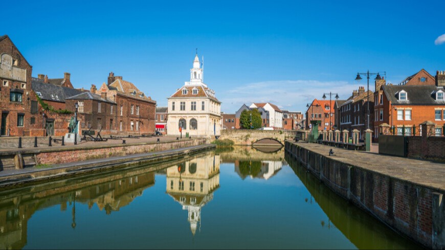 Binoni ta'mirlash vaqtida pol qatlamlari ostidan yoshi 600 yil bo'lgan eman taxtalari topilgan. Shahar binosi XV asrda qurilgan bo'lib, dastlab diniy yig'ilishlar o'tkaziladigan joy bo'lgan, keyin esa teatr maydoniga aylangan. 1593-yilda vabo avj olgani sababli London teatrlari yopilganida, Shekspir truppasi bu erga gastrol uchun kelgan. San'atkorlarning Kings-Linnda chiqishlari uchun olgan to'lovlari haqida yozuvlar mavjud.