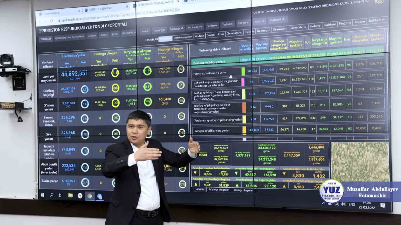 O'tgan yilning 1-may sanasidan O'zbekiston tarixida ilk bor respublika qishloq xo'jaligi yerlarini ro'yxatdan o'tkazish tizimi yo'lga qo'yilgan edi. Bugungi kunda Kadastr agentligi mutaxassislari tomonidan nafaqat qishloq xo'jaligi, balki barcha yer maydonlari hamda ko'chmas mulk obyektlarini ro'yxatdan o'tkazish va maxsus geoportalga kiritish ishlari davom etyapti.