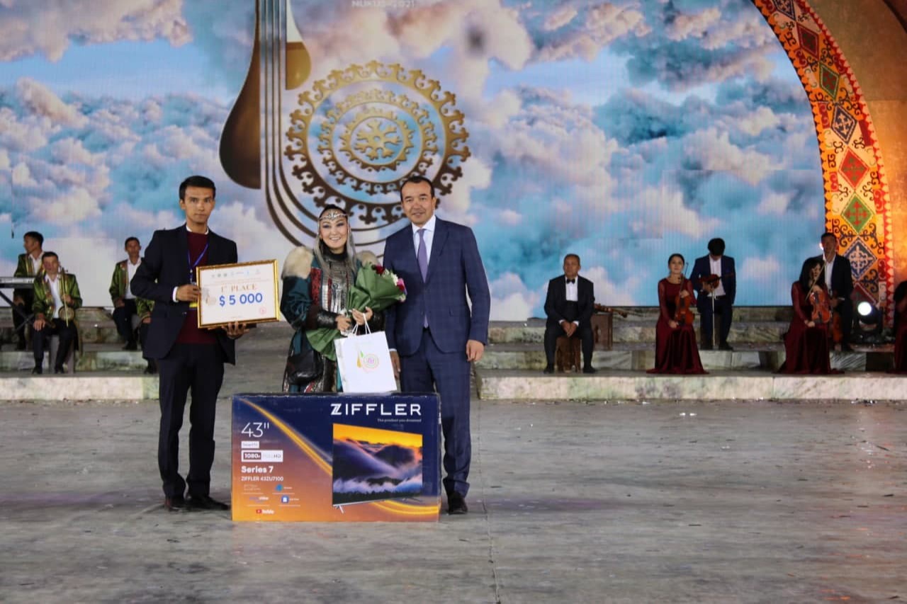“Baxshichilik sanʼati festivalining eng yaxshi targʻibotchisi” nominatsiyasi sovrindori —“Oʻzbekiston-24” telekanali muharriri Karina Nizamudinova, operator Abbos Abdusattorov.