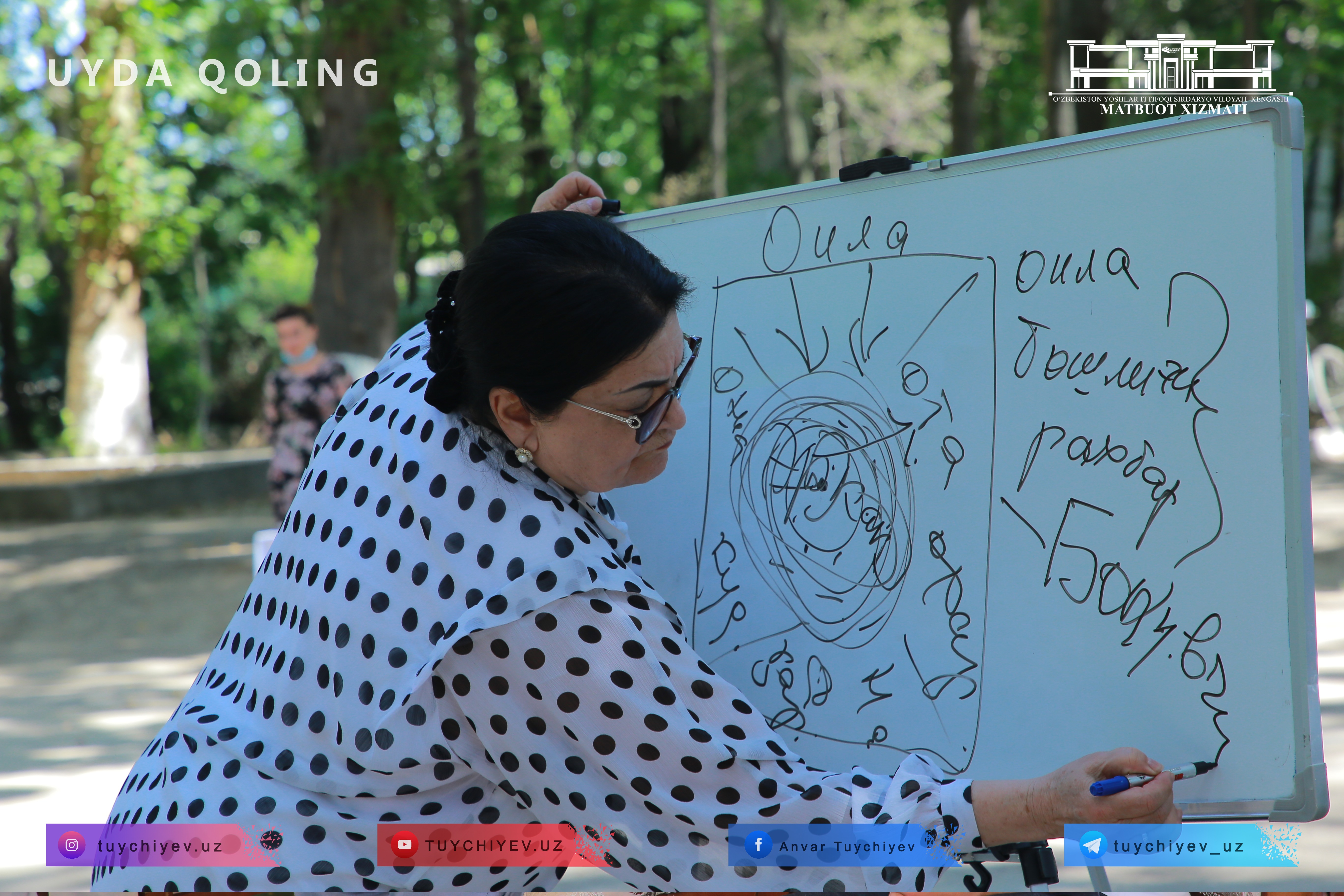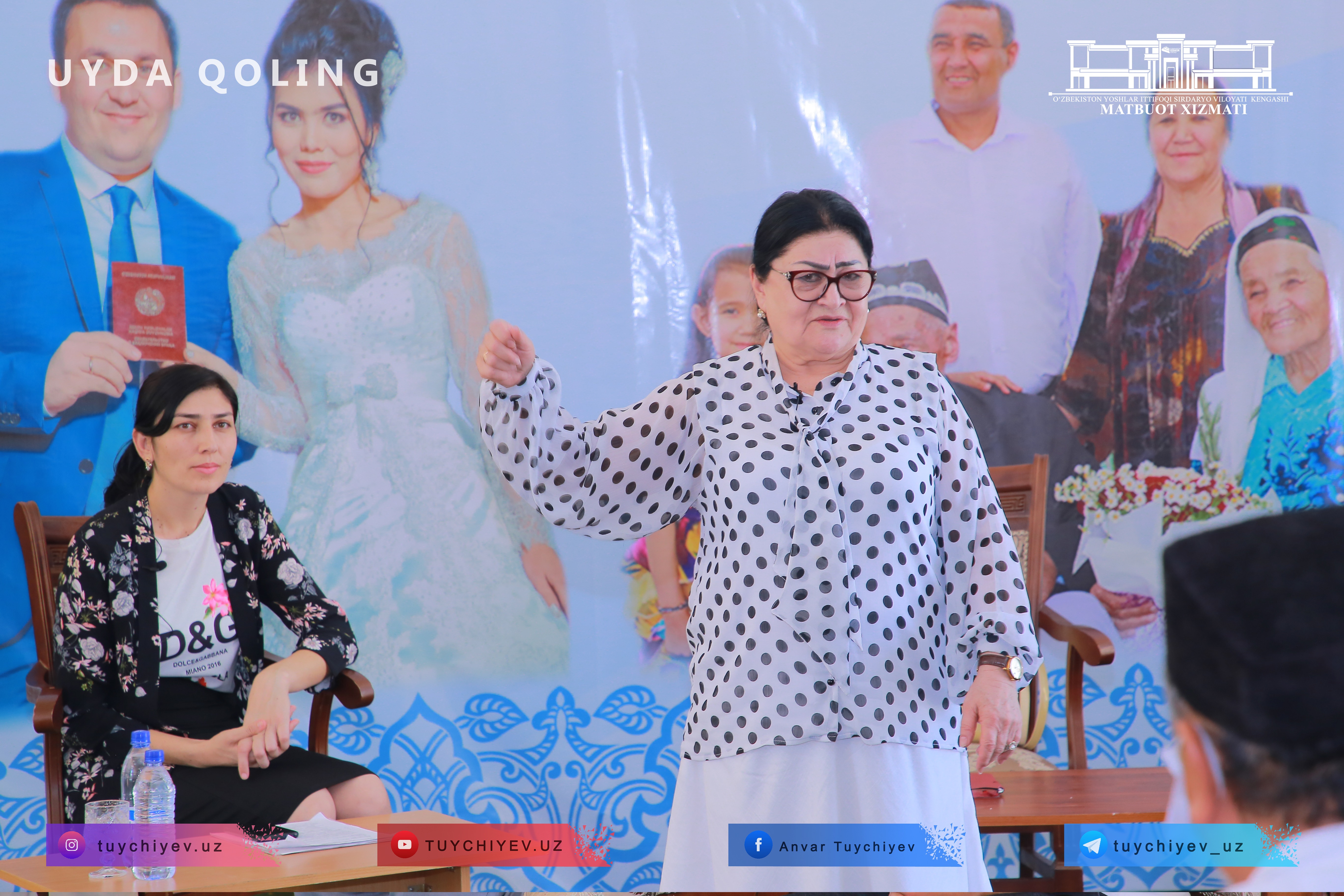Tadbirga ajrim yoqasiga kelib qolgan yosh oilalar, turmush qurish arafasida bo'lgan yigit-qizlar hamda tumanda istiqomat qiluvchi namunali oila vakillari ishtirok etishib, kelin-kuyov, qaynona-kelin, qaynota-kuyov, qudalar o'rtasidagi munosabatlar yuzasidan amaliy tushunchalar berib o'tildi. Aktsiya qiziqarli suhbatlar, fikr-mulohazalarga boy tarzda o'tdi.