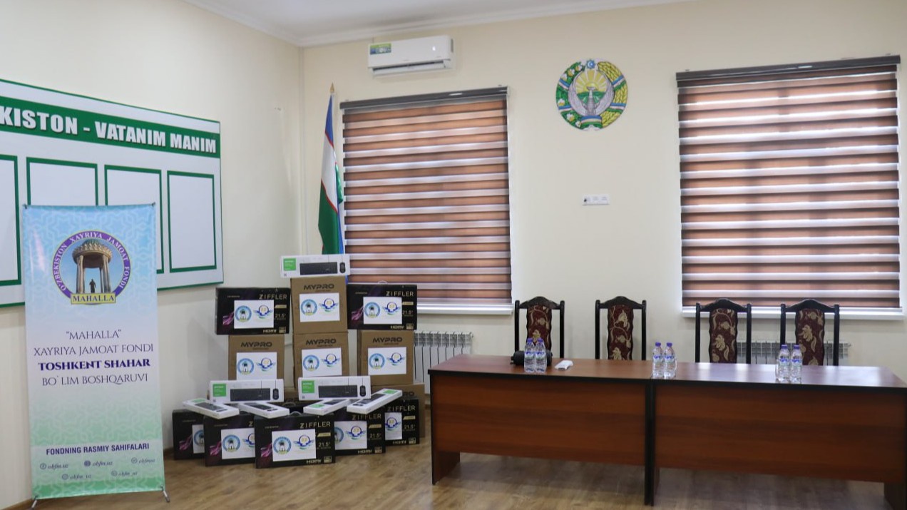 Xayriya tadbiri davomida tumandagi 8 ta mahalla idorasiga kompyuter jihozlari ham topshirildi.
