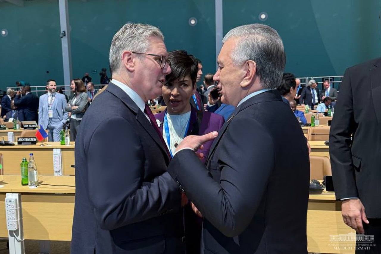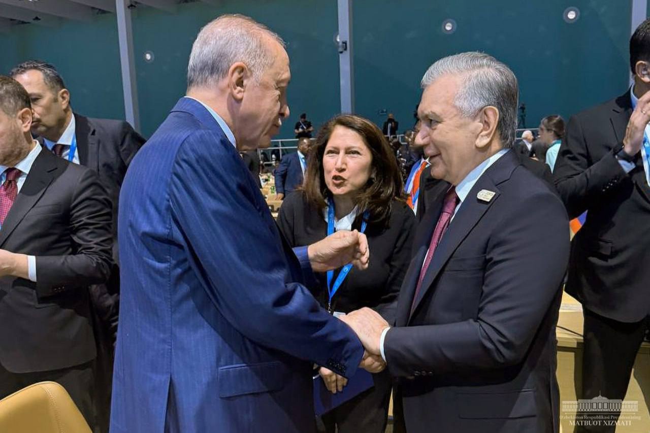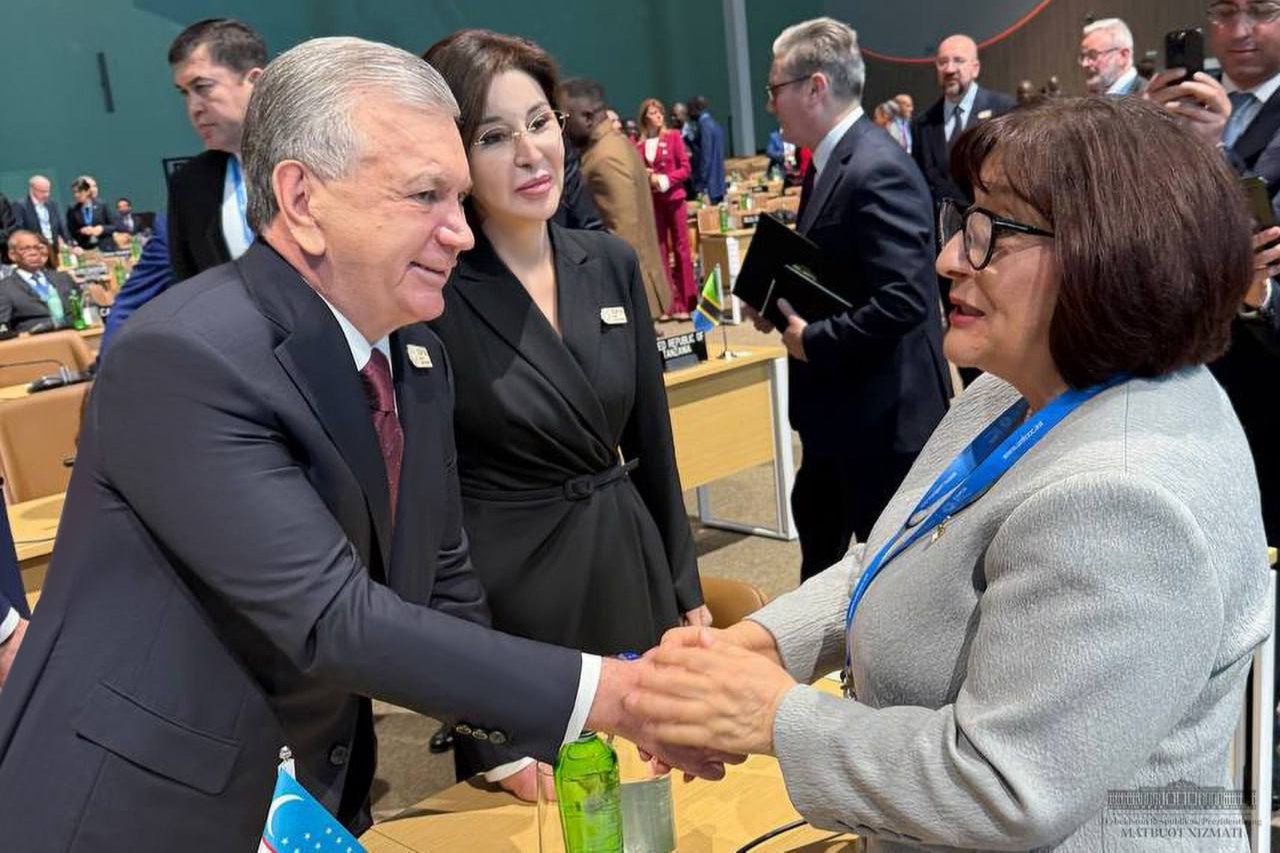 Suratlarda: Prezident Shavkat Mirziyoyev Turkiya Prezidenti Rejep Tayyip Erdogʻan, Buyuk Britaniya Bosh vaziri Kir Starmer, Pokiston Bosh vaziri Shahboz Sharif, Ozarbayjon parlamenti Raisi Sohiba Gafarova, FIFA prezidenti Janni Infantino bilan norasmiy suhbatlar oʻtkazdi.