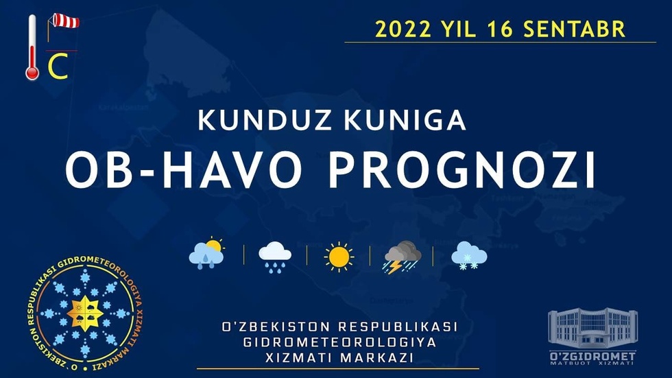 Tog'li hududlarda ba'zi joylarda yomg'ir yog'ishi, momaqaldiroq bo'lishi mumkin. Shamol 7-12 m/s tezlikda esadi. Havo harorati 17-22° bo'ladi.