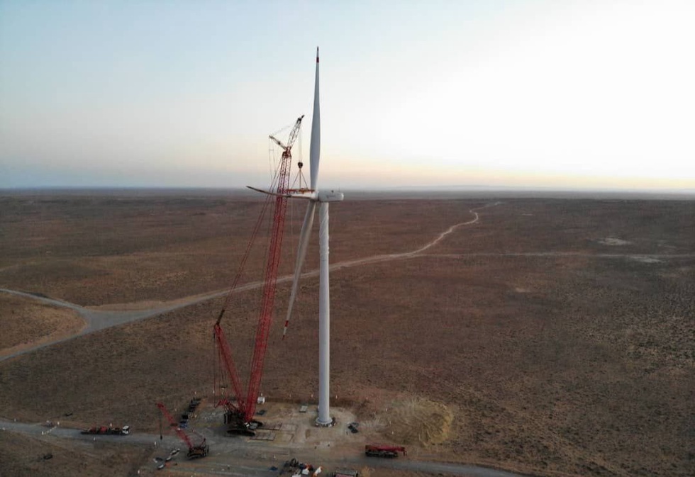 Mazkur loyiha doirasida bugun, 25-iyul kuni “Envision” kompaniyasining (Xitoy) birinchi 6,5 MVt quvvatli turbinasi oʻrnatildi. Turbina minorasining balandligi 100 metr, shamol parraklarining har biri esa 84 metrni tashkil qiladi.