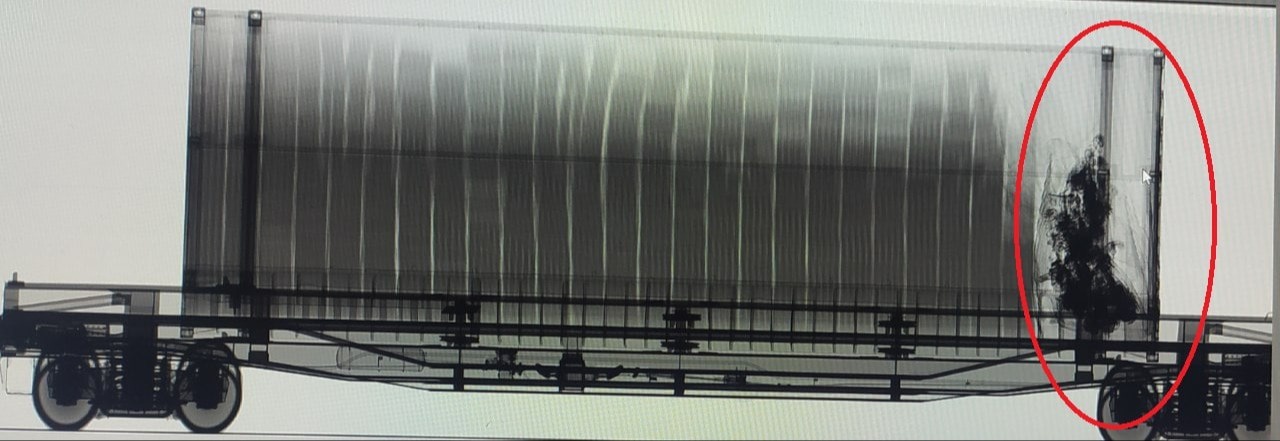 Buxoro viloyati “Xoʻjadavlat” temir yoʻl chegara bojxona posti orqali respublikamiz hududidan tranzit tarzida harakatlanayotgan yuk poyezdi vagonlaridan birining inspeksion koʻrik majmuasidan olingan rentgen tasviri hamda konteyner eshigi, ichki qismidagi belgi va raqamlar aks etgan yorliqlar qoʻlbola usulda oʻzgartirib qoʻyilgani bojxona xodimlarining diqqatini tortdi.