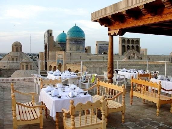 Bugungi kunda, Buxoro shahridagi 28 ta mehmonxona va restoranning tom qismida ochiq terrasaga ega 2420 kishini qabul qilishga moʻljallangan ovqatlanish shaxobchalari tashkil qilingan.