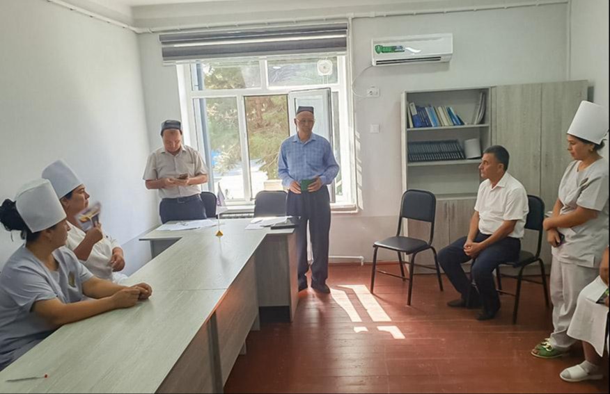 Terapevt, kardiolog, LOR, dermatolog, ginekolog, UZI, stomatolog, pediatr kabi mutaxassislar tomonidan 70 nafardan ziyod aholi chuqurlashtirilgan tibbiy koʻrikdan oʻtkazildi. 15 nafar fuqaroga bepul dori-darmon tarqatildi. Kasallik aniqlangan 2 kishiga statsionar, 10 nafariga ambulator sharoitda davolanishlari uchun tavsiya berildi.