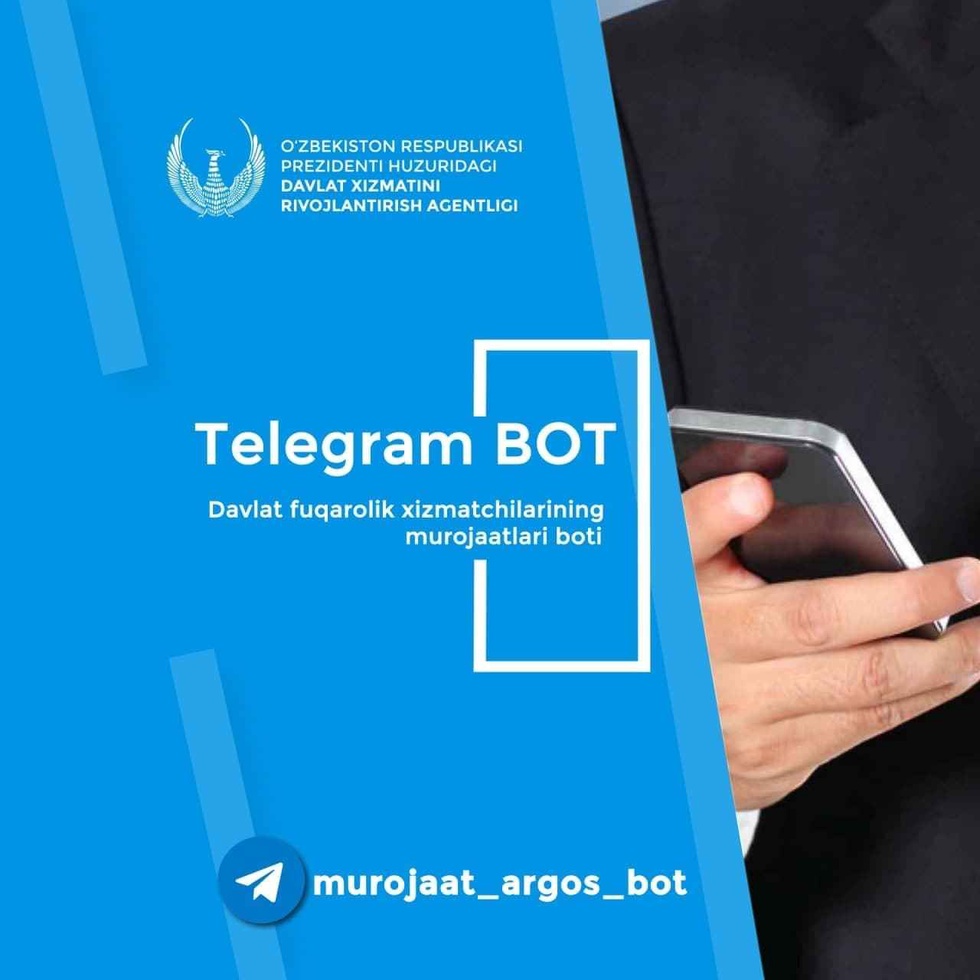 Xabaringiz bor, davlat xizmatchilarining huquqlarini himoya qilish, ular uchun mehnat munosabatlarida teng imkoniyatlar yaratilishini taʼminlash maqsadida @murojaat_argos_bot tizimi ishga tushirilgan edi. Davlat xizmatini rivojlantirish agentligi mazkur bot tizimi orqali davlat xizmatchilarining murojaatlariga javob bermoqda.