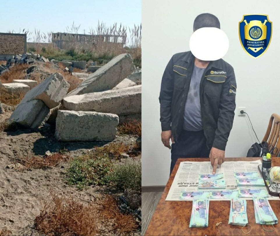 Bosh prokuratura huzuridagi Departamentning Buxoro viloyat boshqarmasi tomonidan IIB xodimlari bilan hamkorlikda oʻtkazilgan tezkor tadbirda, fuqaro X.K. va boshqalar fuqaro S.ga Buxoro shahar “M.Tarobiy” MFY hududidagi 5 sotix zaxiradagi yer maydonini 8 500 AQSH dollariga sotishga kelishib, aldov yoʻli bilan 94 mln soʻmni olgan vaqtlarida ashyoviy dalillar bilan ushlanganlar.