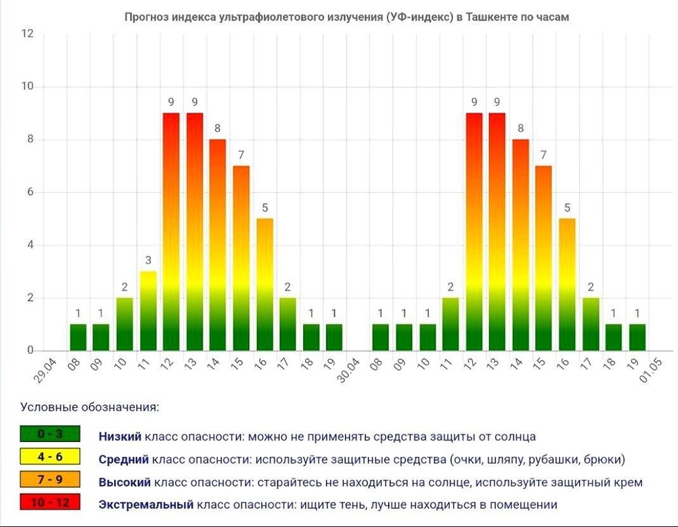 Ochiq oftob ostida himoya bosh kiyimlarini kiyib olish tavsiya etiladi.