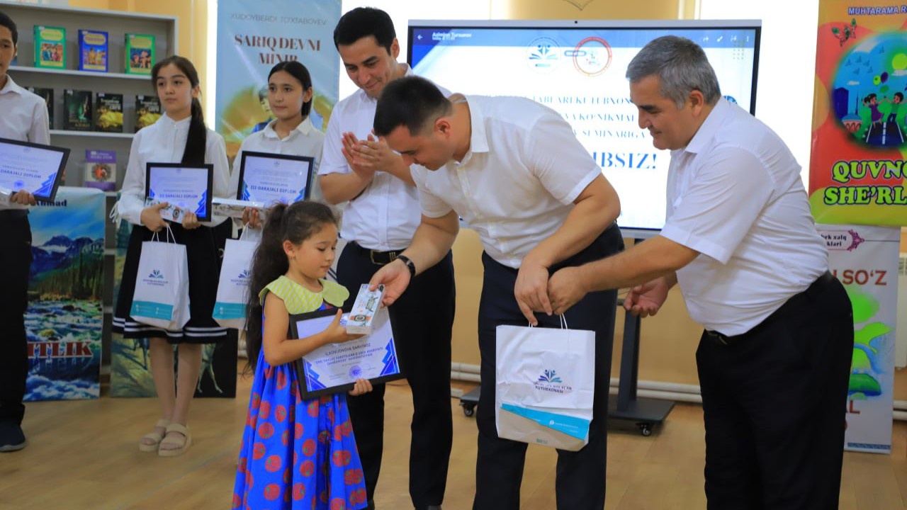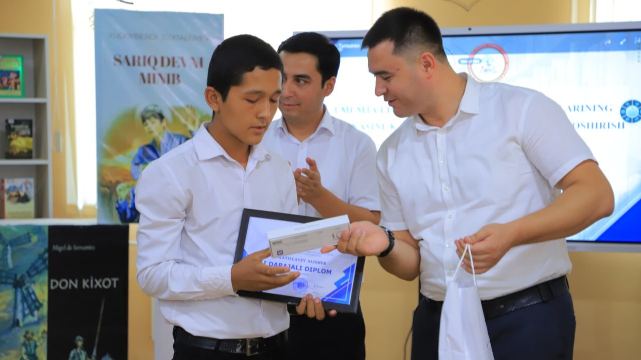 Qisqa musiqiy dasturdan so'ng respublika tanlovlarida g'oliblikni qo'lga kiritgan 9 nafar o'quvchi va 3 nafar kutubxonachi taqdirlandi. Eng fidoyi, tinib-tinchimas kutubxonachilar, iste'dodli yosh kitobxonlarga diplom va qimmatbaho sovg'alar tantanali tarzda topshirildi. Ta'kidlash joiz, joriy yil olti oy davomida mamlakatimiz miqyosidagi kitobxonlik tanlovlarida Namangan viloyatining o'zidan 50 mingdan ziyod o'quvchi qatnashgan.