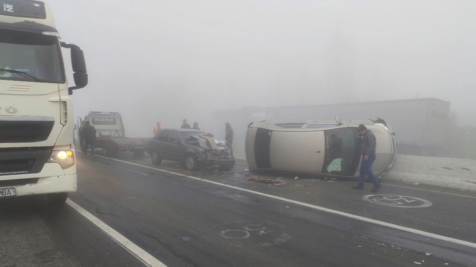 Svetaforning qizil chirogʻida toʻxtab turgan “Kobalt” rusumli avtomobilning ortidan harakatlanib kelayotgan “Neksiya-2”, “Tiko” va “Honday Porter” rusumli avtomobillar qalin tuman tushgan vaqtda oraliq masofani saqlamaganligi sababli oʻzaro toʻqnashgan.