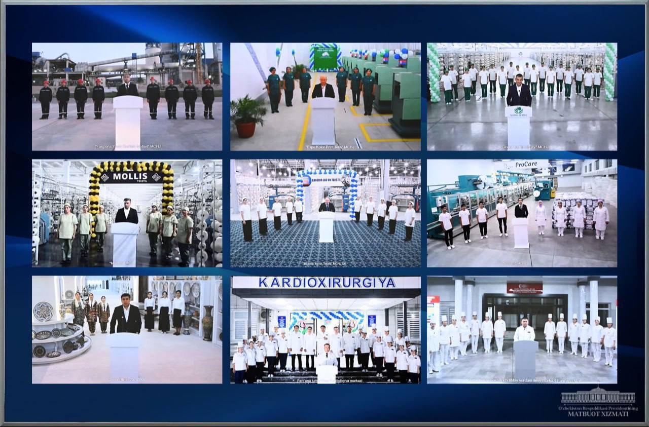 Shu yerda Farg‘ona viloyatidagi yangi majmualarni ishga tushirish marosimi bo‘ldi. Bular - Beshariq tumanidagi “Farg‘ona Yasin qurilish mollari”, Uchko‘prik tumanidagi “Mollis” va “Proker”, Rishton tumanidagi “Chinor plyus – 2020”, Toshloq tumanidagi “Ekspo kollor prin teks”, Farg‘ona tumanidagi “Bahodir Log‘on tekstil”, O‘zbekiston tumanidagi “Sement xomashyo savdosi”, Qo‘shtepa tumanidagi “Global Tekstayl Infiniti” korxonalari, shuningdek, shoshilinch tibbiy yordam hamda kardiologiya ilmiy-amaliy markazlari filiallaridir.