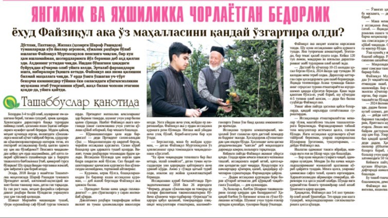 Fayziqul Murtazoqulovning qadamidan oʻt chaqnayotganini koʻrgan odamlar uning yetmishdan oshib, saksonni qoralayotganiga ishonmaydi. Bir qarasang, hovlisidagi yangi ekilgan koʻchatlar orasida tokqaychi ushlab yurgan, bir ozdan keyin esa qoʻylarga xashak tashlayotgan boʻladi.