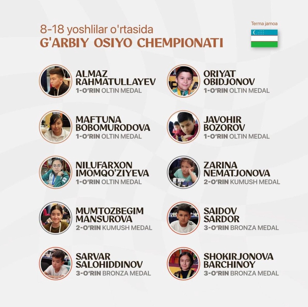 Avval xabar berganimizdek, 8-18 yoshlilar o‘rtasidagi ushbu musobaqada 10 ta davlatdan jami 268 nafar yosh shaxmatchi g‘oliblik yo‘lida o‘zaro dona surdi. Quvonarlisi, O‘zbekiston terma jamoasi klassik yo‘nalishi bahslarida 5 ta oltin, 2 ta kumush, 3 ta bronza medali bilan umumjamoa hisobida birinchi o‘rinni egalladi.