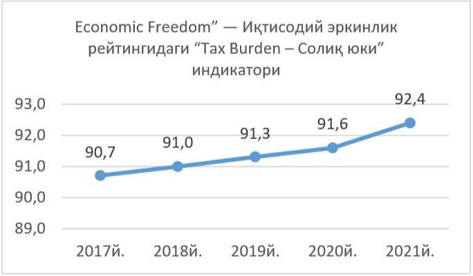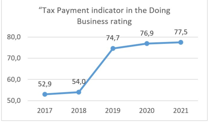 2017-2020 yillardagi amalga oshirilgan soliq islohotlari natijalari xalqaro reyting va indekslarda ham o'z aksini topganini ko'rish mumkin. Xususan, “Economic Freedom” — Iqtisodiy erkinlik reytingidagi “Tax Burden – Soliq yuki” indikatori bo'yicha 2017 yildagi 90,7 ballik ko'rsatkichdan 92,4 ballik ko'rsatkichga, “Doing Business” — Biznes yuritish reytingidagi "Soliq to'lovi" indikatori bo'yicha 2016 yildagi 52,9 ballik ko'rsatkichdan 77,9 ballik ko'rsatkichga erishildi.