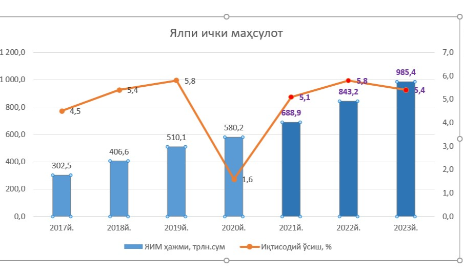 2021 – 2023 yillarga mo'ljallangan O'zbekiston Respublikasining Fiskal strategiyasiga muvofiq esa, iqtisodiy o'sish 2021 yilda 5,1 foizga, 2022 yilda 5,8 foizga, 2023 yilda esa 5,4 foizga o'sishga qaratilgan choralar belgilangan. SHuningdek, yalpi ichki mahsulot hajmini kelgusi 5 yil ichida 100 mlrd. dollarga etkazish bo'yicha yuqori o'sishni ta'minlash, soliq-byudjet siyosatini takomillashtirish, sanoat tarmoqlari, energetika, transport, qishloq xo'jaligi, uy-joy va kommunal sohalarni rivojlantirish borasida yanada istiqbolli marralar belgilangan.