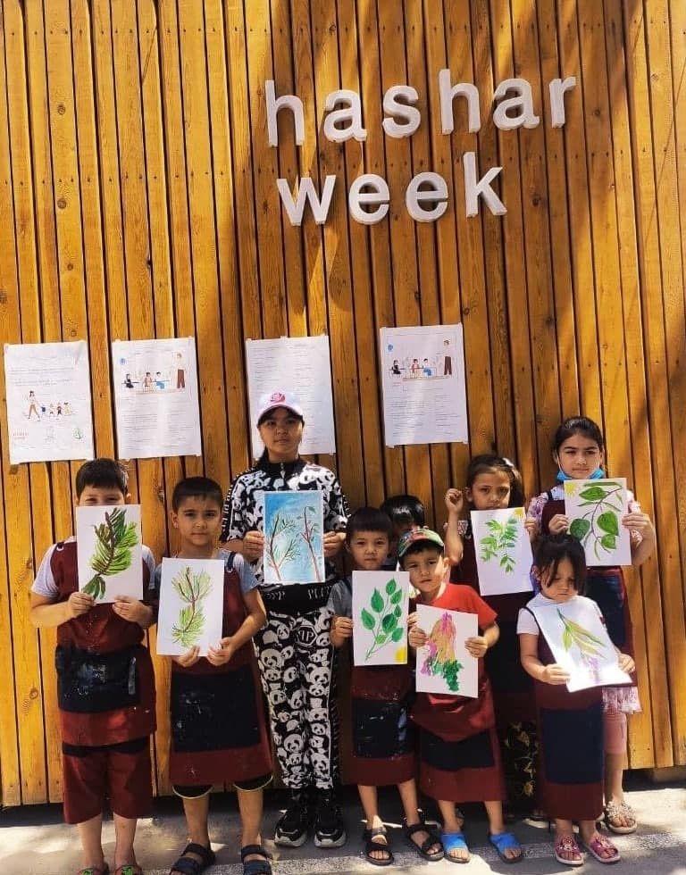 Bolajonlarda atrof-muhitni asrash ko'nikmalarini rivojlantirish maqsadida ushbu daraxtlarning fotosuratlari chizildi.