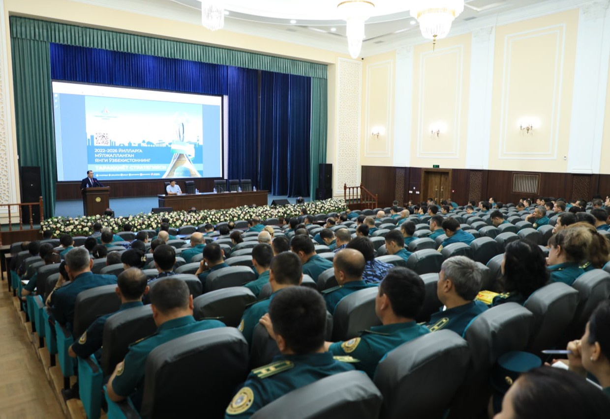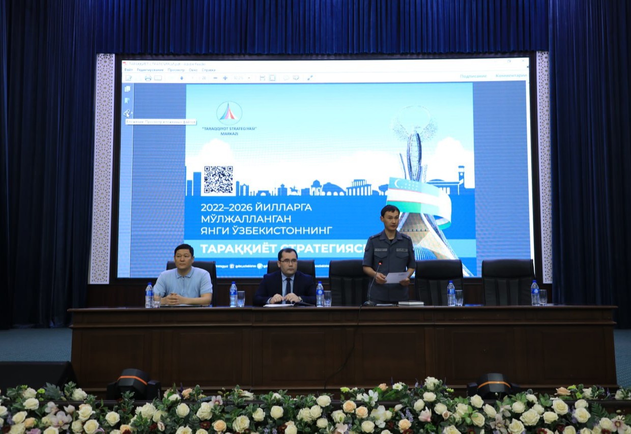 Tadbir davomida jamiyat tinchligi, qonunlar ijrosi uchun hissa qo'shadigan kadrlarni etishtirib berishda o'z o'rniga ega bo'lgan akademiya jamoasi faoliyatiga bevosita bog'liq bo'lgan, birinchi — Inson qadrini yuksaltirish va erkin fuqarolik jamiyatini yanada rivojlantirish orqali xalqparvar davlat barpo etish hamda ikkinchi — Mamlakatimizda adolat va qonun ustuvorligi tamoyillarini taraqqiyotning eng asosiy va zarur shartiga aylantirish yo'nalishlari doirasidagi maqsad va vazifalarning tub mohiyati yanada kengroq ochib berildi.