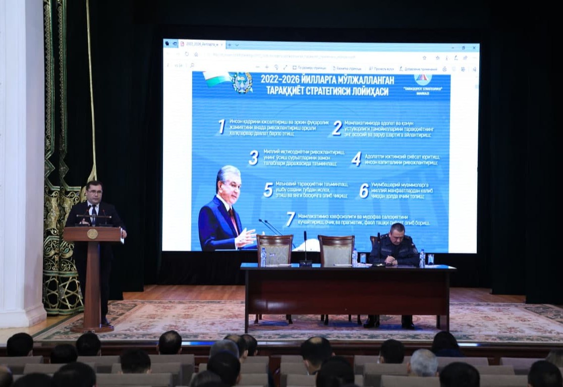 2022 yilning 8 yanvar kuni «Taraqqiyot strategiyasi» markazi ijrochi direktori Eldor Tulyakov Ichki ishlar vazirligi taklifiga binoan «Harakatlar strategiyasidan — Taraqqiyot strategiyasi sari» mavzusida vazirlik tizimida faoliyat ko'rsatayotgan xodimlar uchun taqdimot o'tkazdi.