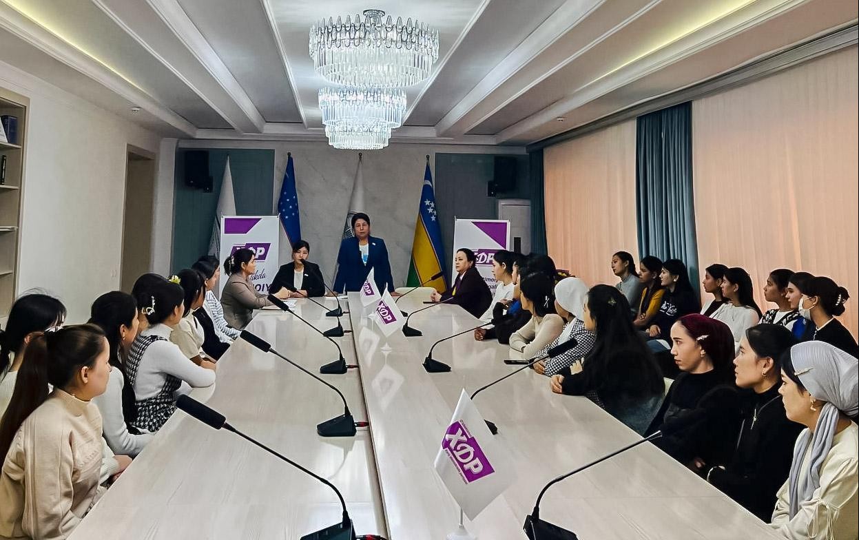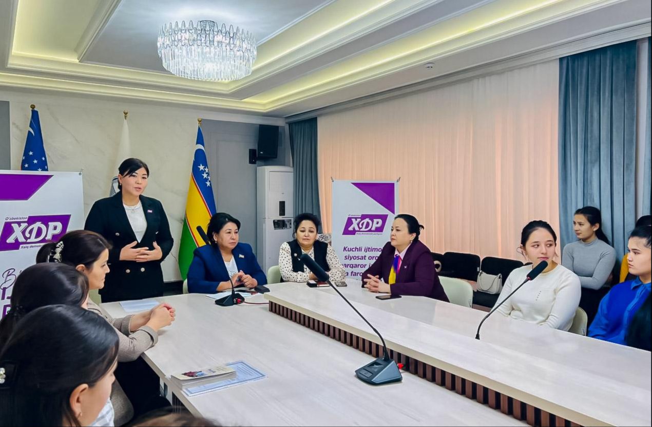 Bundan tashqari, xotin-qizlarni ijtimoiy qoʻllab-quvvatlash borasida qabul qilingan qonun va qonunosti hujjatlarning mazmun-mohiyati haqida soʻz bordi. Ayollar uchun yaratilayotgan sharoit, berilayotgan imkoniyat va imtiyozlar, xotin-qizlarning haq-huquqlari taʼminlashga oid chora-tadbirlar toʻgʻrisida toʻxtalib oʻtildi. Shu bilan birga, xotin-qizlarning taʼlim va kasbiy koʻnikmalar olishi, imtiyozli uy-joy, kreditlarga ega boʻlishi borasida Oʻzbekiston Xalq demokratik partiyasi dasturiy maqsad vazifalarini amalga oshirish boʻyicha olib borilayotgan ishlar yuzasidan maʼlumotlar berildi.