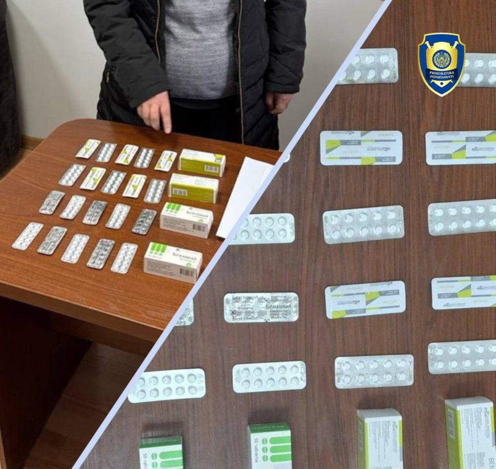 Departamentning Shayxontohur tumani boʻlimi tomonidan oʻtkazilgan tezkor tadbirda “R.Ph.” MCHJga qarashli dorixona sotuvchisi fuqaro M.X.ga 4 quti “Benzonal 100 mg” nomli kuchli taʼsir qiluvchi dori vositasini retseptsiz sotgan vaqtida ashyoviy dalillar bilan ushlangan.