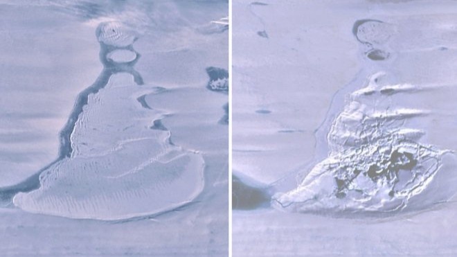 Olimlarning taʼkidlashicha, yoʻqolib qolgan koʻlning suv zahirasi muzlik ostida oʻn yilliklar davomida hosil boʻlgan. Suv massasi ogʻirligining oshishi natijasida muzlik eriy boshlagan, suv esa muz oralab okeanga quyilgan. Muzlik yuqori qismining oʻpirilib tushishi esa krater hosil boʻlishiga olib keldi.