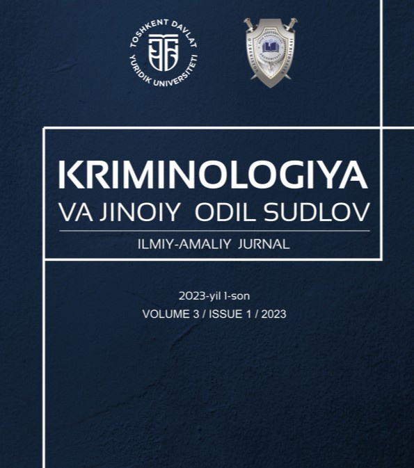 “Kriminologiya va jinoiy odil sudlov” jurnali 2023-yil sentabr oyida Oliy attestatsiya komissiyasi tomonidan yuridik fanlar boʻyicha falsafa doktori (PhD) va fan doktori (DSc) ilmiy darajasiga talabgorlarning dissertatsiya ishlaridagi asosiy ilmiy natijalarini chop etish tavsiya etilgan milliy ilmiy nashrlar roʻyxatiga kiritilgan. Tahrir hayʼati tarkibi mahalliy va xorijlik ekspertlardan shakllantirilgan. Maqolalarda adabiyotlar tartibi Harvard usulida beriladi. Maqolalar chop etilishidan oldin antiplagiat boʻyicha “Turnitin” dasturidan va yagona talab asosida anonim ekspertiza (double-blind peer reviyew)dan oʻtkaziladi.