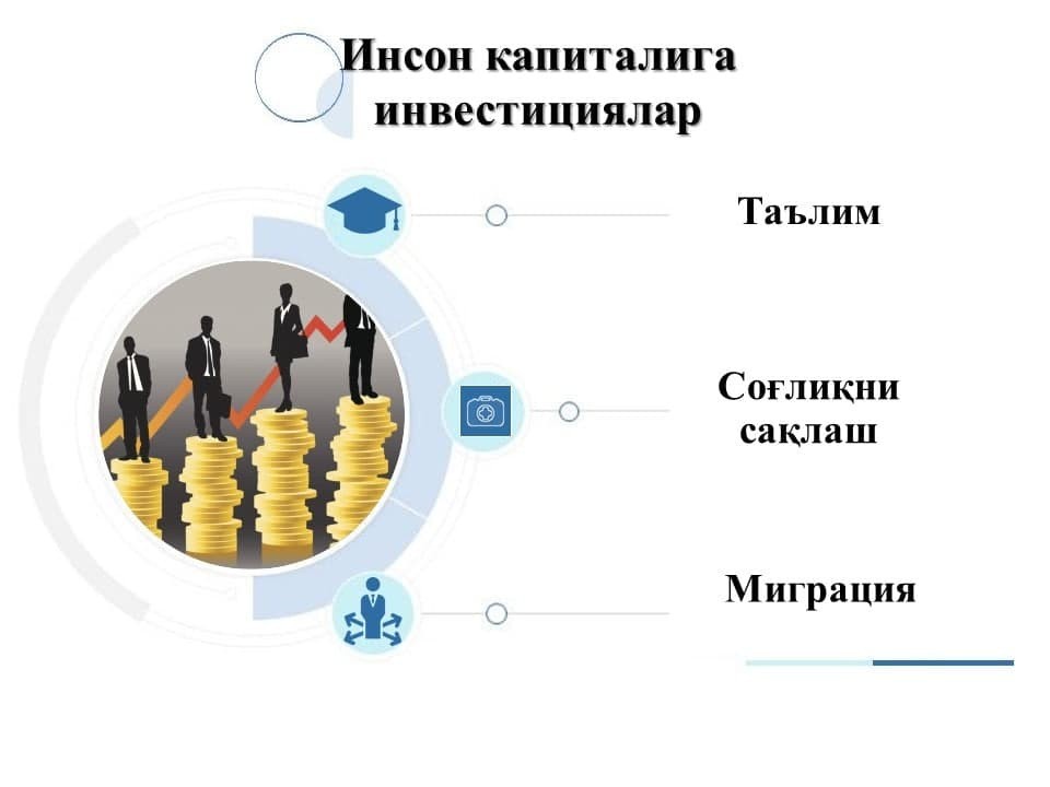 Darhaqiqat, keyingi yillarda Oʻzbekistonda inson kapitalini rivojlantirish orqali barqaror iqtisodiy oʻsishni taʼminlash va xalqqa munosib turmush tarzini yaratib berishga kun tartibidagi asosiy masala sifatida qaralmoqda.