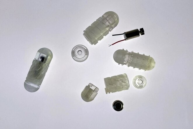 Uning bir uchiga zarur preparat rezervuari oʻrnatilgan. Ikkinchi tomonidan esa moslamani harakatlantiruvchi, uni oshqozon kislotasidan himoya qiladigan va ichak shilliq qavatlaridan oʻtishiga imkon beruvchi mitti mexanizm joy olgan. Qurilma yuzasi jelatin moddasi bilan qoplangan.
