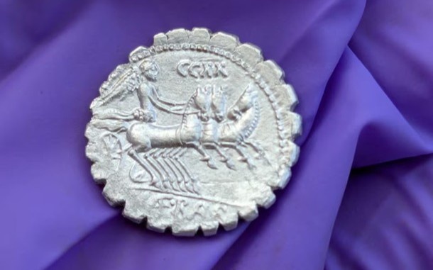 Tangalar yaqinda yoqqan kuchli yomg'ir tufayli topildi, boisi yomg'ir tuproqni yumshatgan, bu esa qadimiy topilmaning ba'zilarini tosh ostidan topish imkonini berdi.