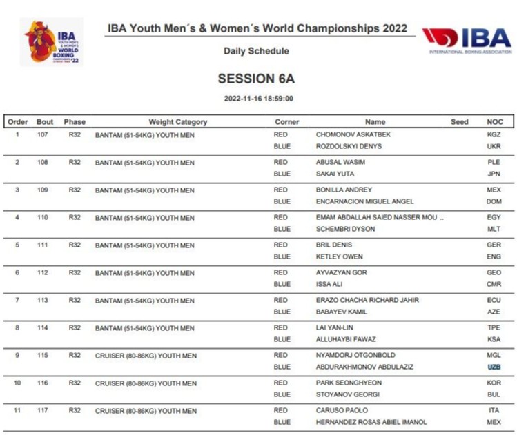 Kecha, 16-noyabr kuni musobaqa doirasida toʻrt nafar oʻzbekistonlik bokschi ringga koʻtarildi. Eʼtiborli va eʼtirofli jihati, ularning barchasi gʻalabaga erishdi.