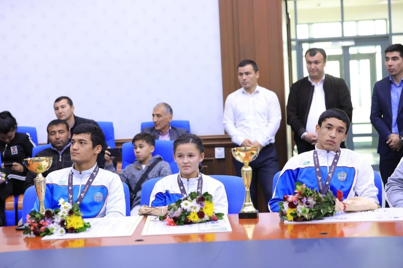 Shundan so‘ng sportchilar Turizm va sport vazirligi binosiga taklif etildi va maxsus pul mukofotlari bilan taqdirlandi. Mukofotlarni o‘z egalariga Turizm va sport vaziri o‘rinbosari A.Karimov va Milliy Olimpiya qo‘mitasi bosh kotibi O.Qosimov topshirdi va sportchilarni qo‘lga kiritgan yutuqlari bilan tabriklab, minnatdorlik bildirdi.
