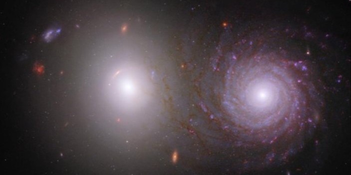 Qayd etilishicha, suratda oq ellips shaklidagi galaktika (chapda) va spiral shaklidagi galaktika (o'ngda)ning avval ko'rilmagan detallari aks etgan. Bu ikki galaktika nisbatan yaqin joylashgan, biroq faol o'zaro ta'sirga kirishmaydi.